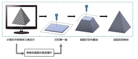 外觀設計是指形狀、圖案、色彩或其結合的設計,這里的外觀設計主要是指外觀形狀的三維結構,其次便是色彩。包括工業設計品(如商品外觀、包裝設計等)和藝術設計(工業藝術品、藝術造型燈)。3D打印的特點便是小批量、定制化制造復雜模型。其基本原理如圖: